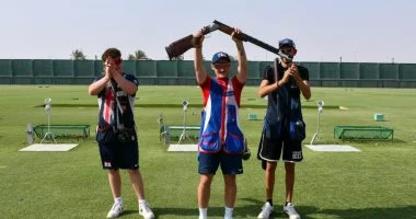 في منافسات “التراب” (ناشئين) انتزع الفرنسي توماس أجيز المركز الأول والذهب، محققاً رقماً قياسياً عالمياً جديداً لفئة الناشئين بواقع (28) هدفاً، متفوقاً على البريطاني ويليام بيتس توماس صاحب الفضية، والإيطالي فرانشيسكو تانفوجوليو الذي حل ثالثاً.