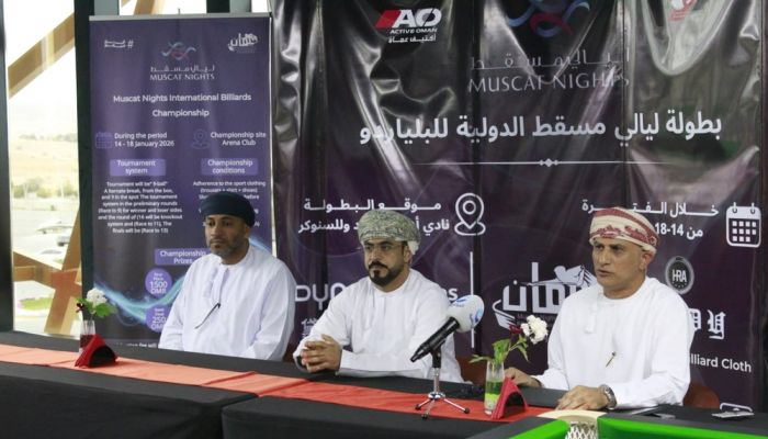وفي سياق متصل، تنطلق مساء اليوم الأربعاء بطولة ليالي مسقط الدولية للبلياردو والسنوكر، بمشاركة 125 لاعبًا ولاعبة من 18 دولة، وبمجموع جوائز مالية يبلغ 6,770 ريالًا عُمانيًا؛ خُصص منها 3,420 ريالًا للسنوكر و3,350 ريالًا للبلياردو. وتُقام البطولة على مدى خمسة أيام خلال الفترة من 14 إلى 18 يناير، وفق أنظمة احترافية معتمدة من الاتحاد الدولي، تشمل مراحل المجموعات وخروج المغلوب وصولًا إلى النهائيات، بما يعكس المستوى العالي للتنظيم وقوة التنافس الفني، ويؤكد المكانة المتنامية لمسقط كوجهة دولية لبطولات البلياردو والسنوكر.
