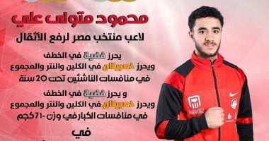 حصد محمود متولى لاعب منتخب رفع الأثقال ذهبيتى الكلين والمجموع، وفضية الخطف بمنافسات وزن 71 كجم، تحت 20 سنة بالبطولة العربية التى تستضيفها قطر، بينما حقق فضية الخطف وذهبتى الكلين والمجموع على صعيد الكبار .