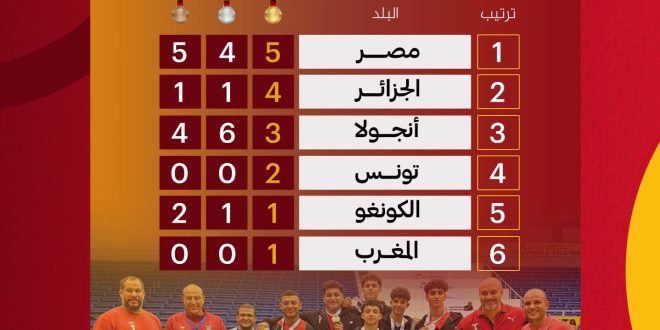 وحقق المنتخب صدارة منافسات الشباب والشابات ، إلى جانب المركز الأول في الترتيب العام، في إنجاز يعكس قوة الجودو المصري وتفوقه القاري، وذلك بعد حصد 5 ميداليات ذهبية، و4 ميداليات فضية، و 5 ميداليات برونزية .
