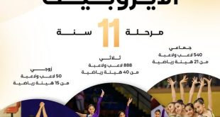 انطلقت اليوم فعاليات بطولة كأس مصر لجمباز الأيروبيك – مرحلة 11 سنة لمنافسات الزوجي والثلاثي والجماعي، والمقامة خلال الفترة من 2 إلى 3 ديسمبر 2025 بصالة (2) باستاد القاهرة الدولي. تشهد البطولة مشاركة واسعة، حيث تضم منافسات الزوجي بمشاركة 50 لاعبًا من 15 هيئة رياضية، ومنافسات الثلاثي بمشاركة 888 لاعبًا …